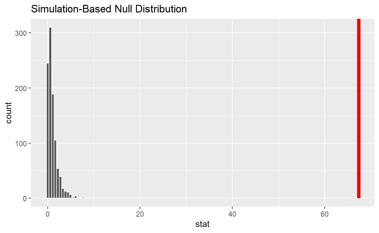 shade_p_value(obs_stat = F_hat, direction = "greater")