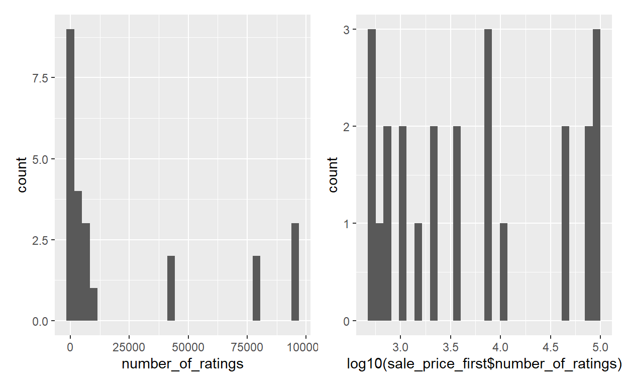 geom_histogram(aes(log10(sale_price_first$number_of_ratings)))