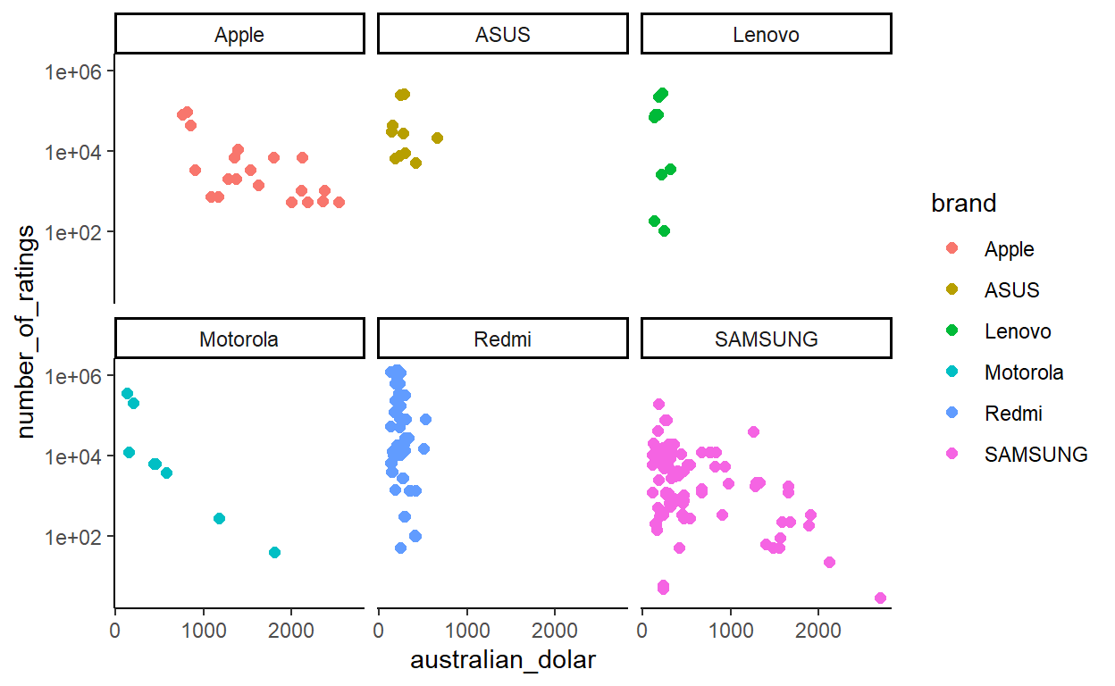 filter(brand == "SAMSUNG" | brand == "Apple" | brand == "Lenovo" | brand == "Redmi" |brand == "Motorola" | brand == "ASUS") %>%